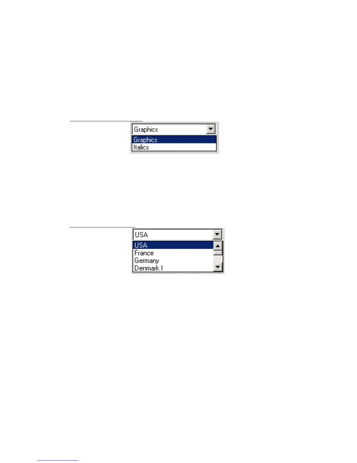 This menu allows you to select the use of special characters