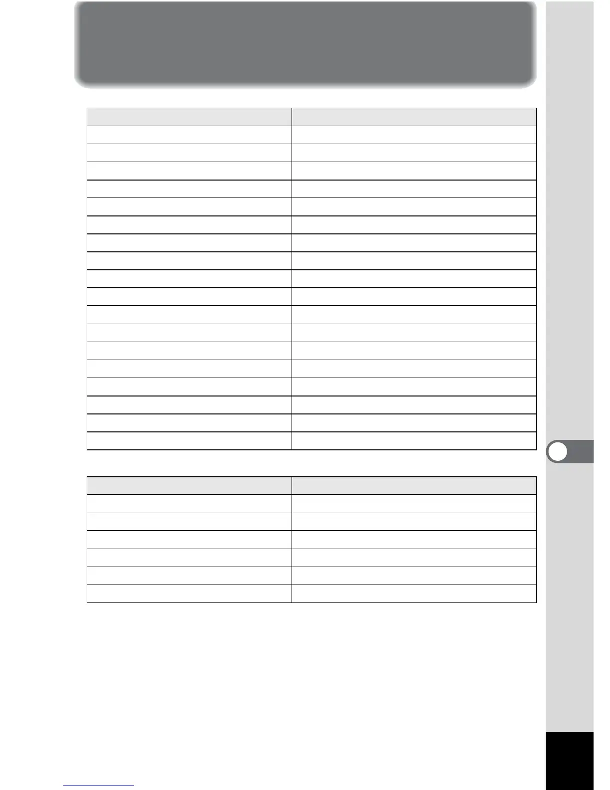 Pentax 555 - List of Menu Default Settings