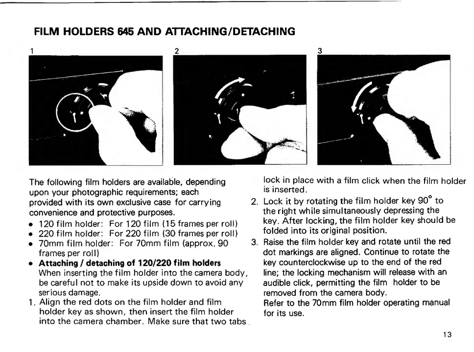 Pentax 645 - FILM HOLDERS 645 AND ATTACHING;DETACHING; Attaching; detaching of 120;220 film holders