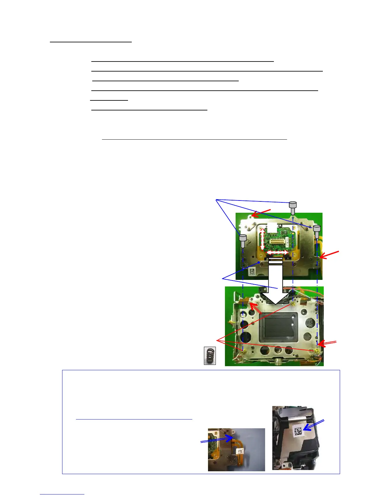 ⑤[Adjustment] A31 x3 --- Screw back two turns --- Temporary adjustment of height of CCD.