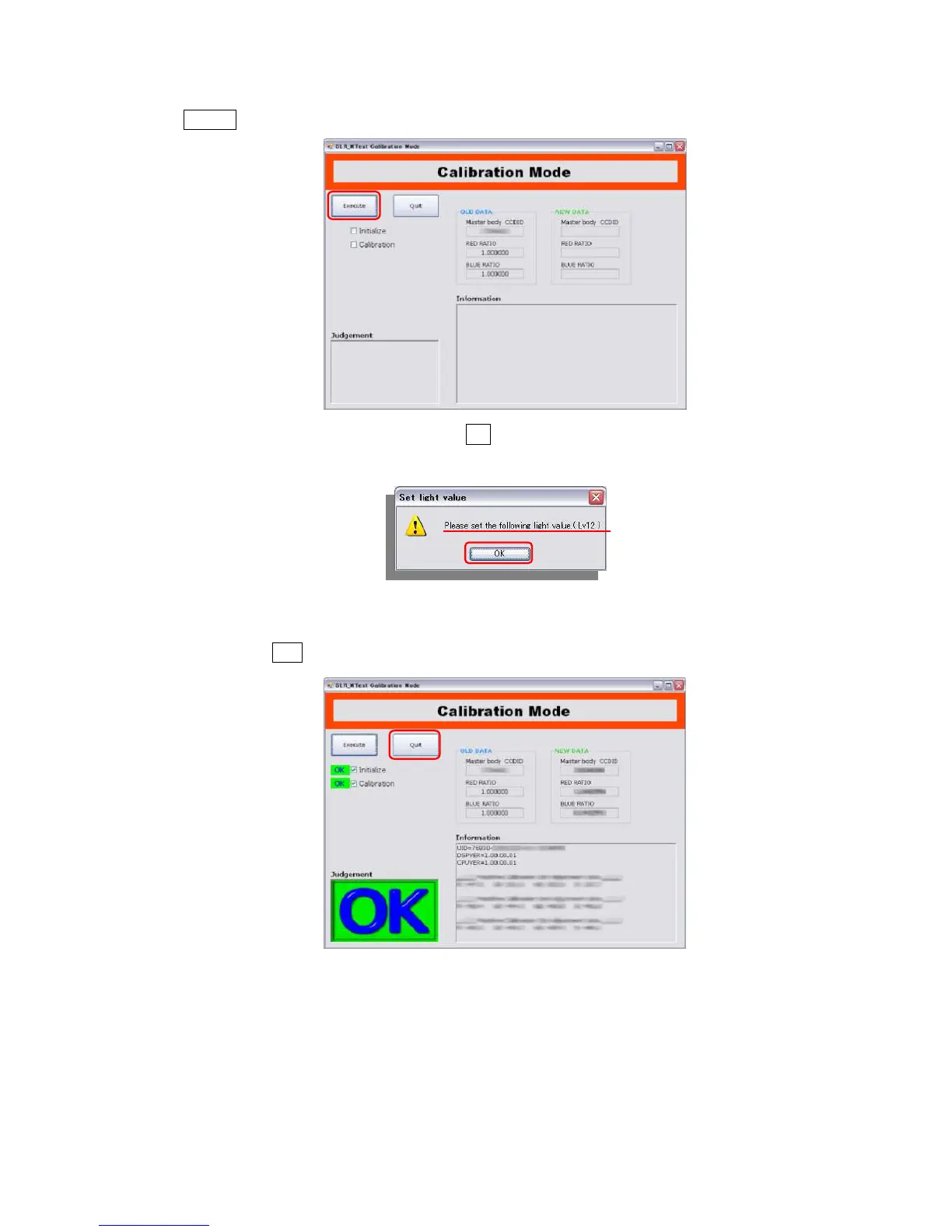 ⑧Click Execute on calibration mode to start calibration.