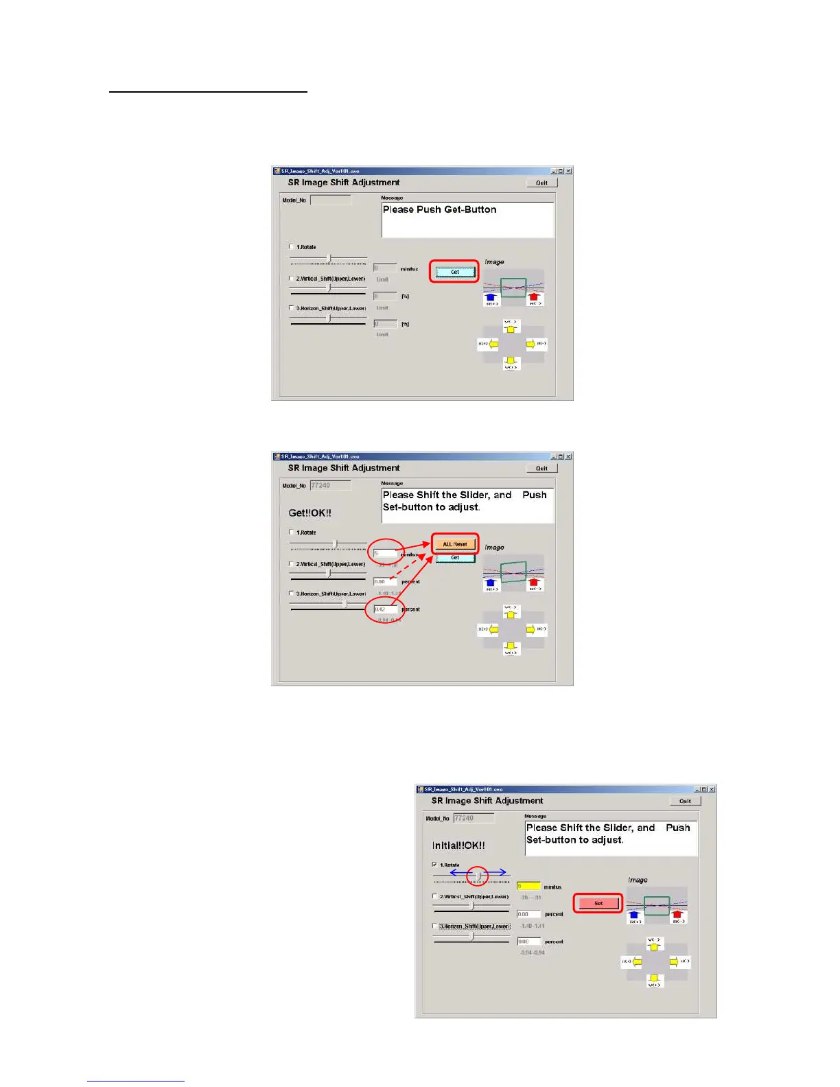 ②Double click [SR_Image_ Shift_ Adj.exe] in [Rotation_Ver]holder] to start up software.