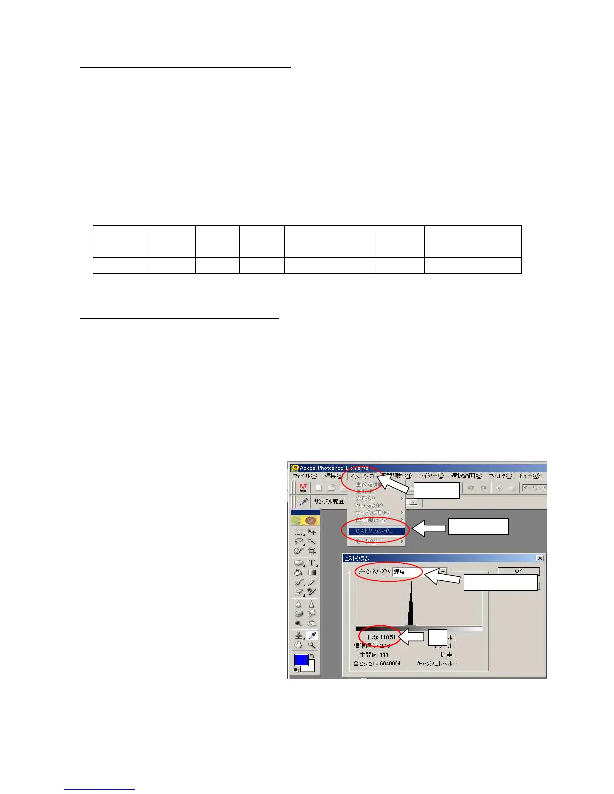 Image viewing software (Required: indicate brightness level by Histogram. EX:Adobe Photo shop, etc. )