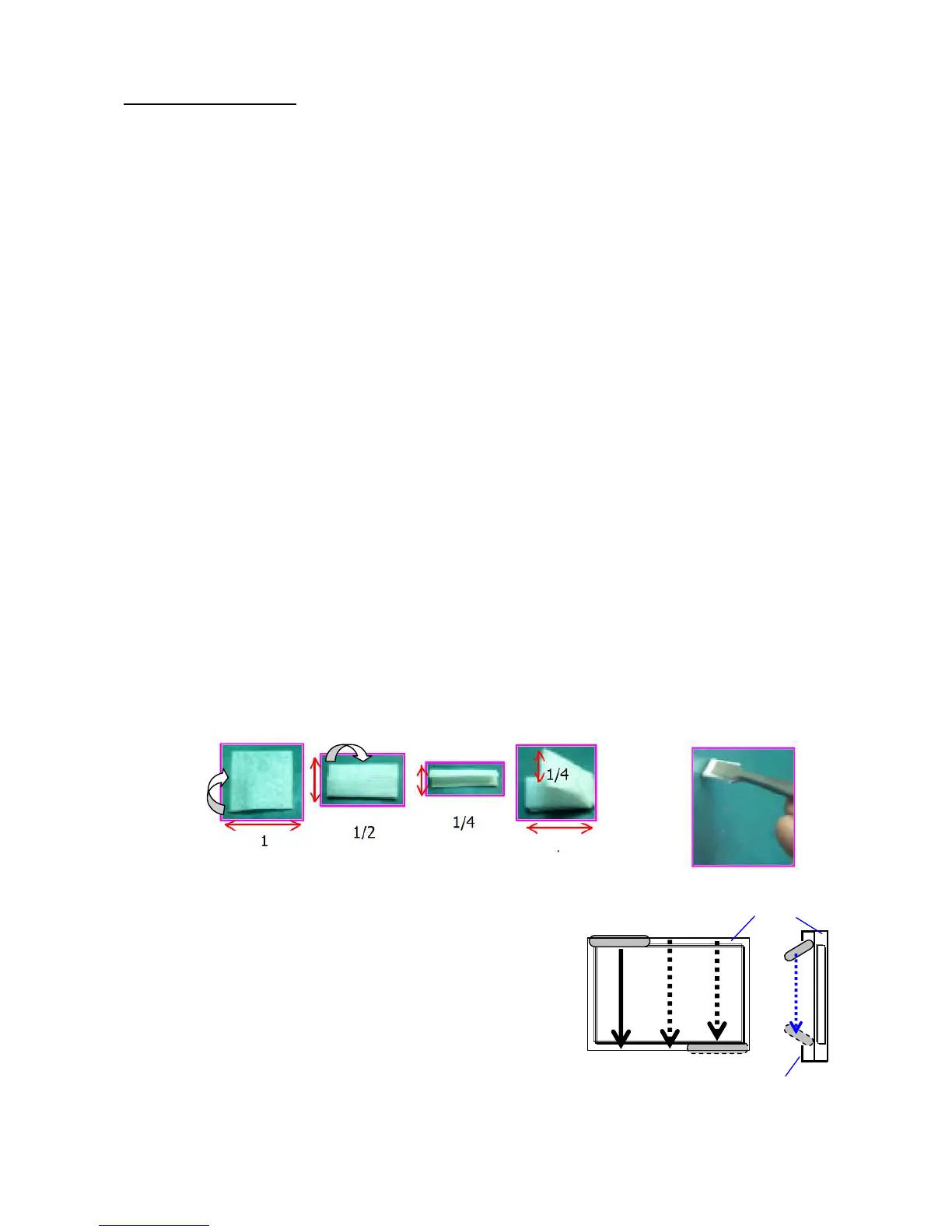 ① Cut the Clean wipe-P about 1/4 (50x105mm) and hold the Clean wipe-P 7-8mm width.