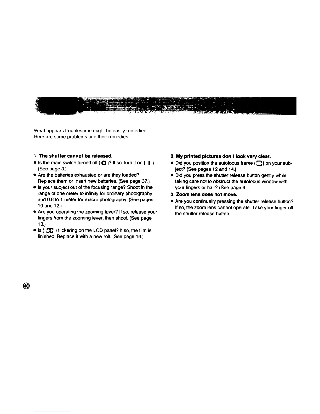 Pentax 90 - Troubleshooting; Shutter Issues; Picture Clarity Problems; Lens Movement Issues