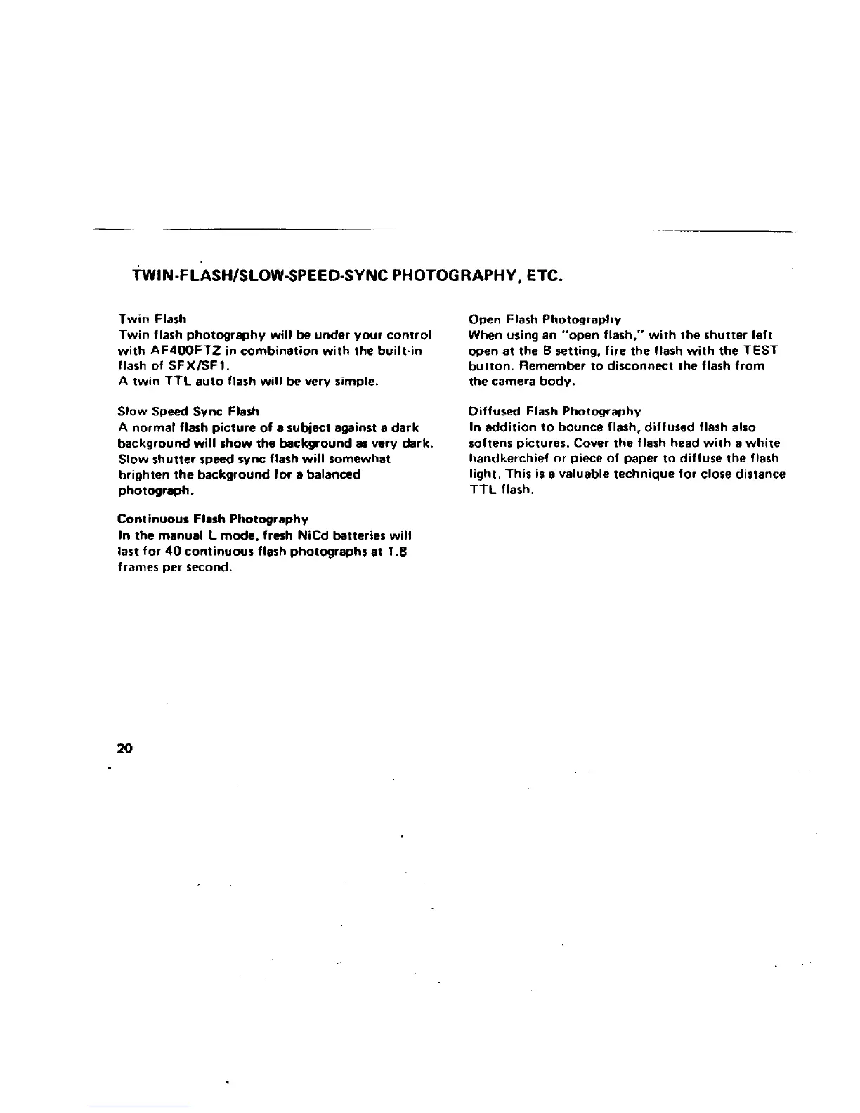 Pentax AF400FTZ - Advanced Flash Photography Techniques; Twin Flash; Slow Speed Sync Flash; Continuous Flash Photography
