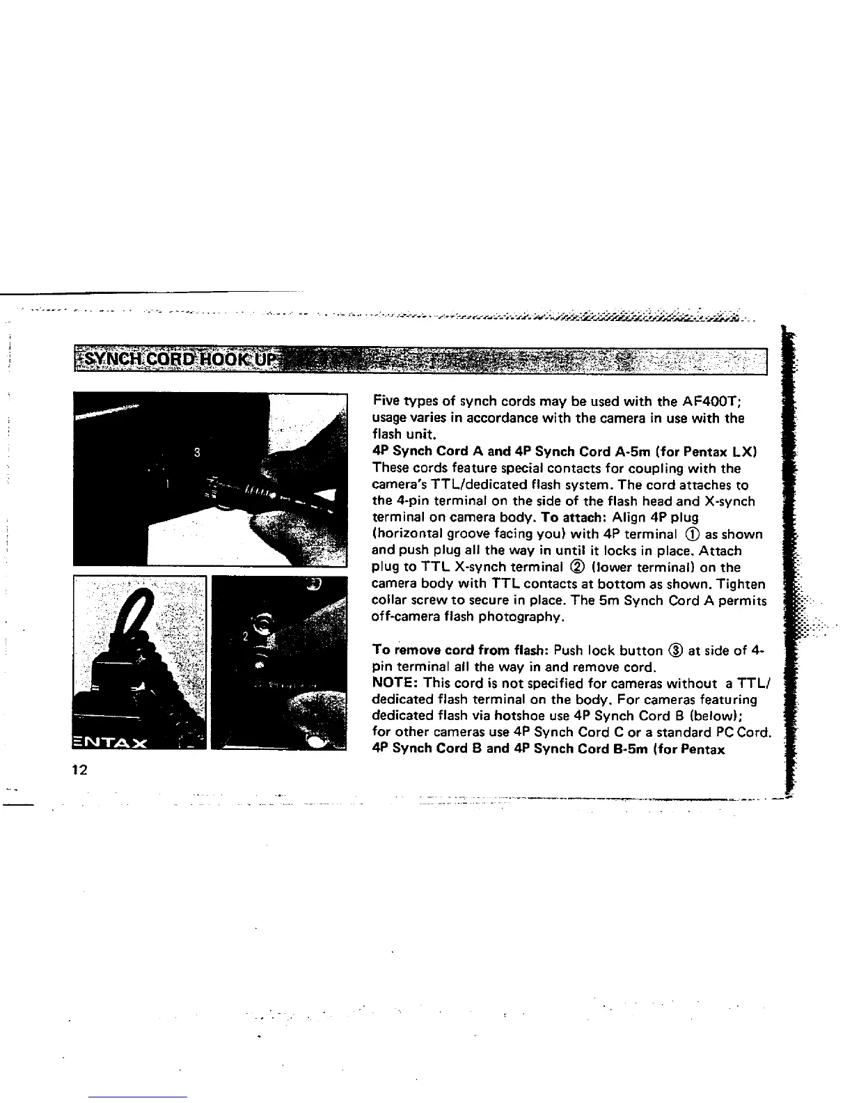 Pentax AF400T Flash - Synch Cord Hook up; Array