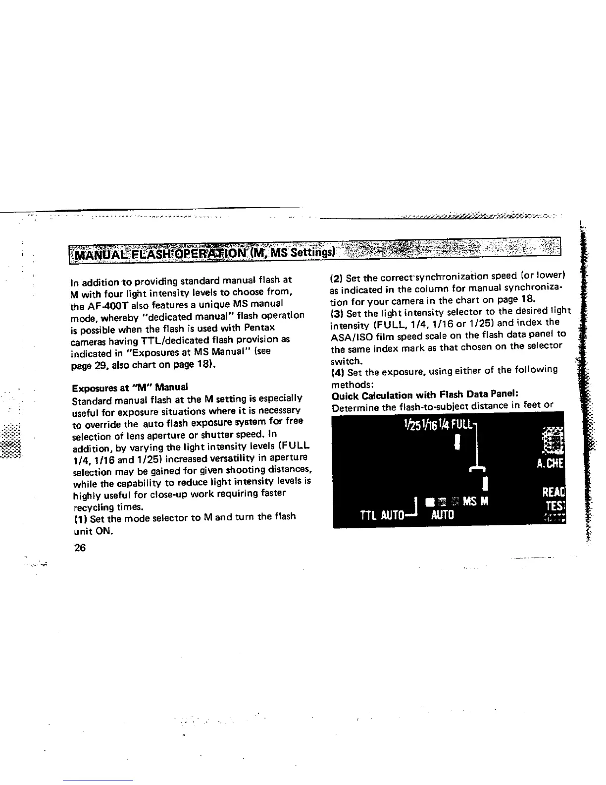 Pentax AF400T Flash - Manual Flash Operation; Array