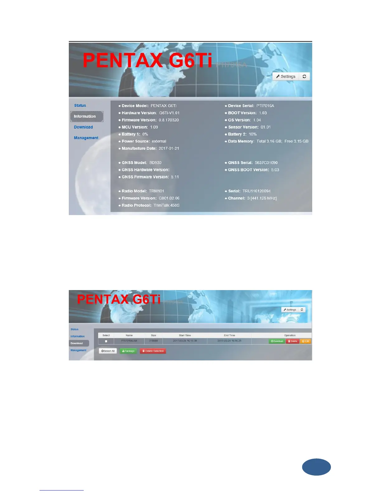 Pentax G6 - 3.3 Download; 3.4 Management