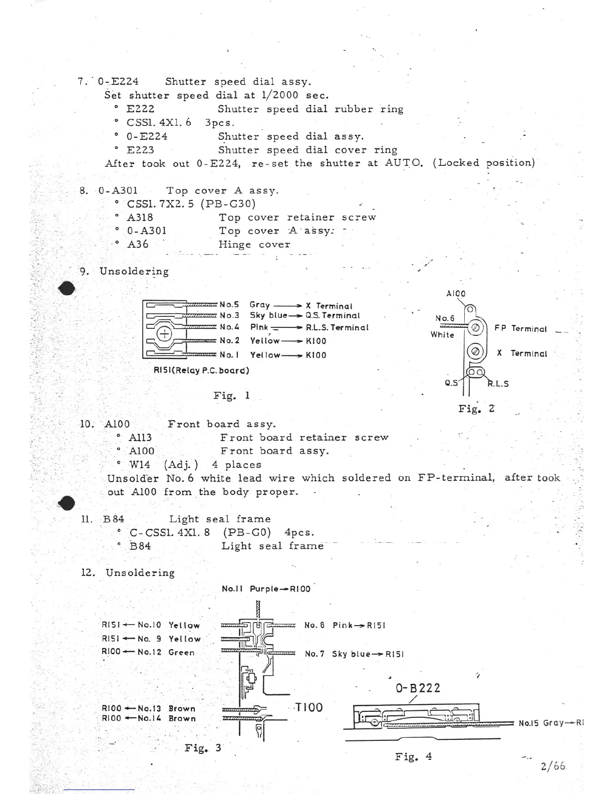 Pentax ILX - Unsoldering Procedures; Top Cover Assembly; Front Board Assembly; Light Seal Frame