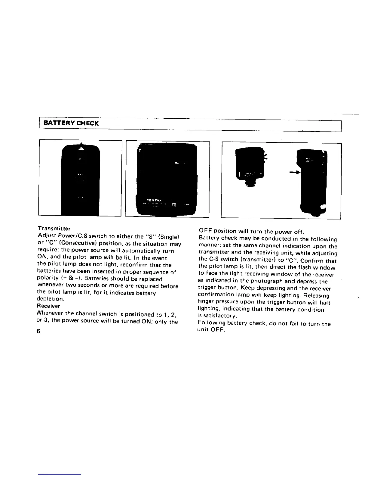Pentax Infrared Remote Control System - Battery Check; Transmitter