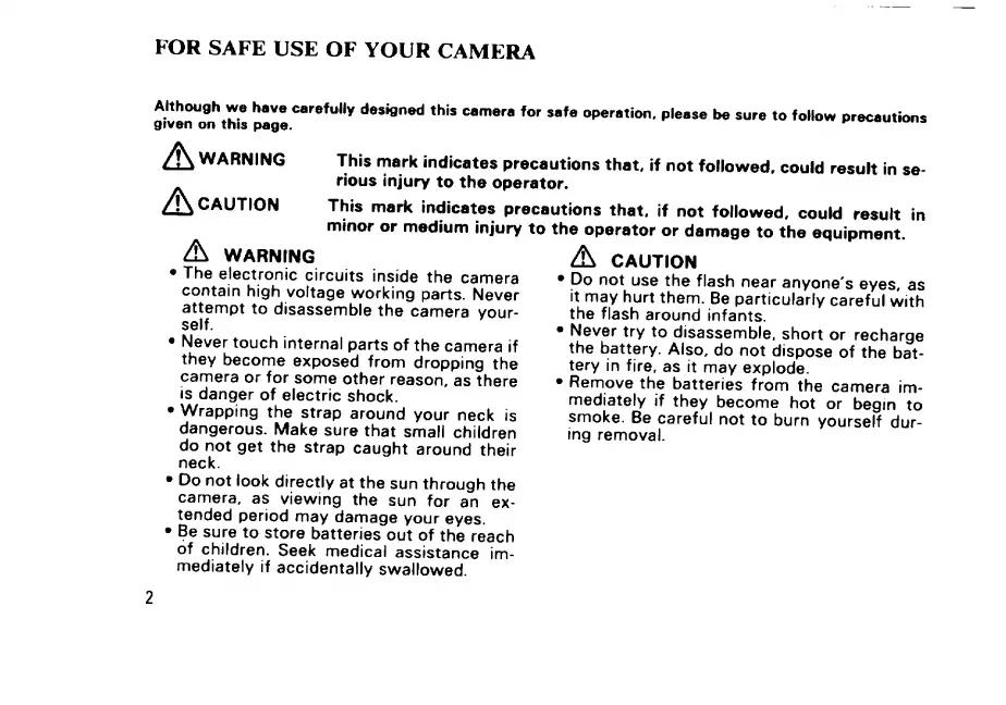 Pentax IQZoom 80-E - For Safe Use of Your Camera