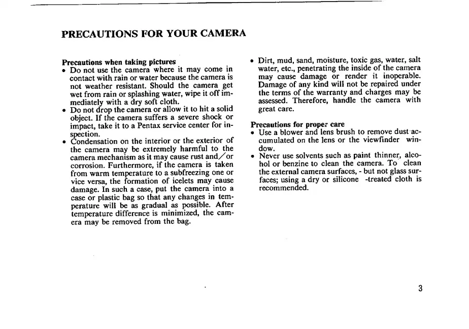 Pentax IQZoom 80-E - Precautions for Your Camera