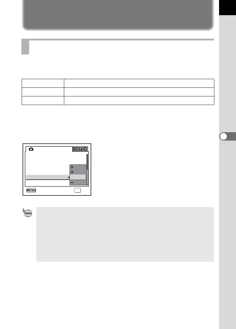 • Compensating to the minus (–) side may not effect the image if the subject is
