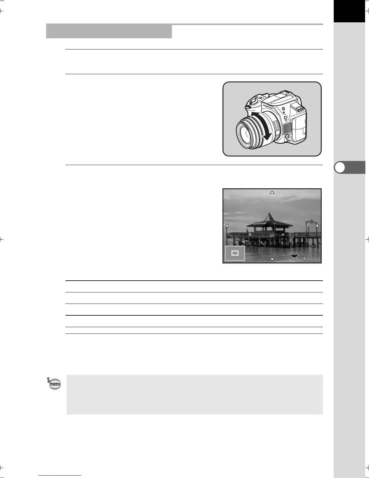 Rear e-dial (S) to the left (f) Reduces the image (up to 2 times)