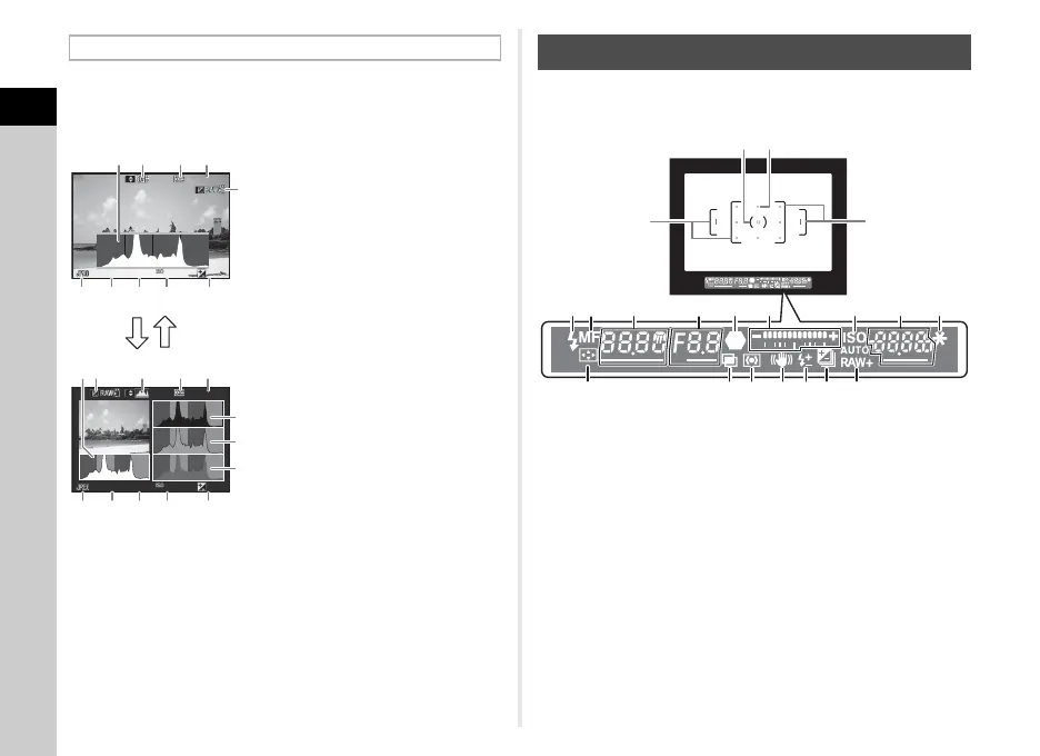 When shooting with the viewfinder, information appears in the