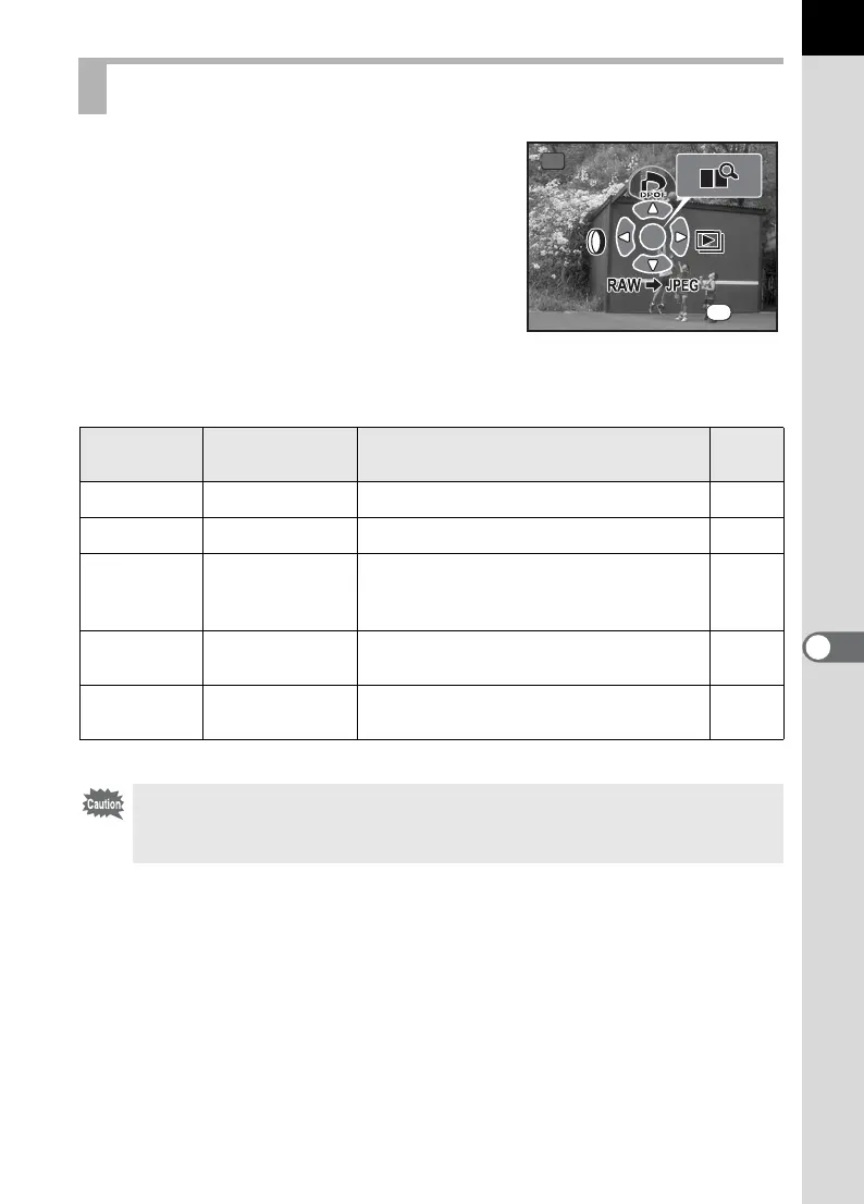 RAW Display Converts RAW images to JPEG format. p.185
