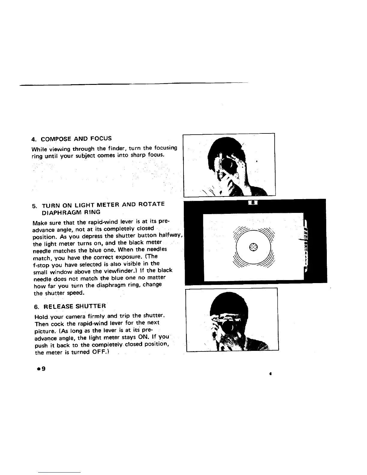 Pentax KX - COMPOSE AND FOCUS; ACTIVATE METER & ROTATE DIAPHRAGM; RELEASE SHUTTER & COCK LEVER