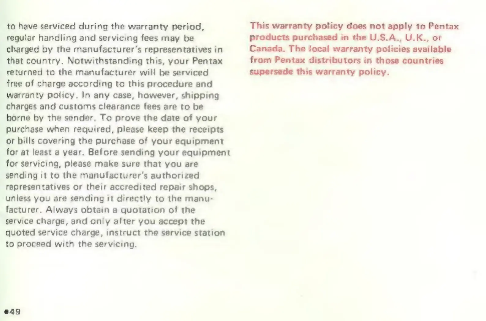 Pentax ME Super - Warranty Procedure and Regional Policies
