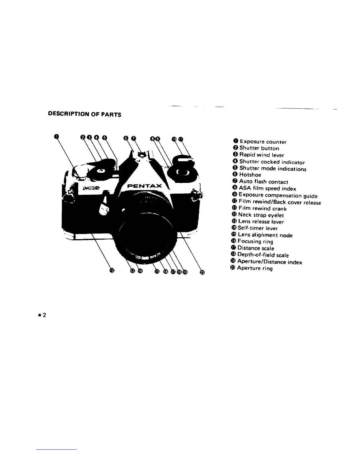 Pentax MG - Description of Parts
