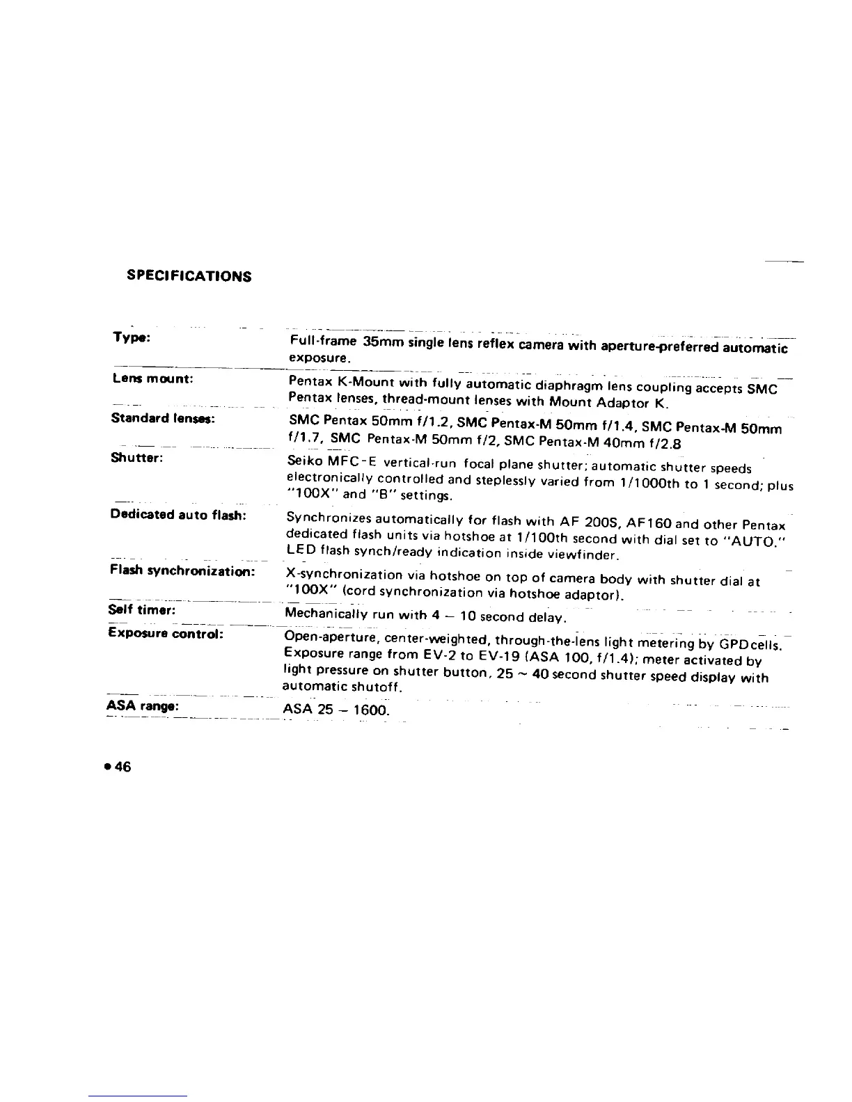 Pentax MG - Specifications
