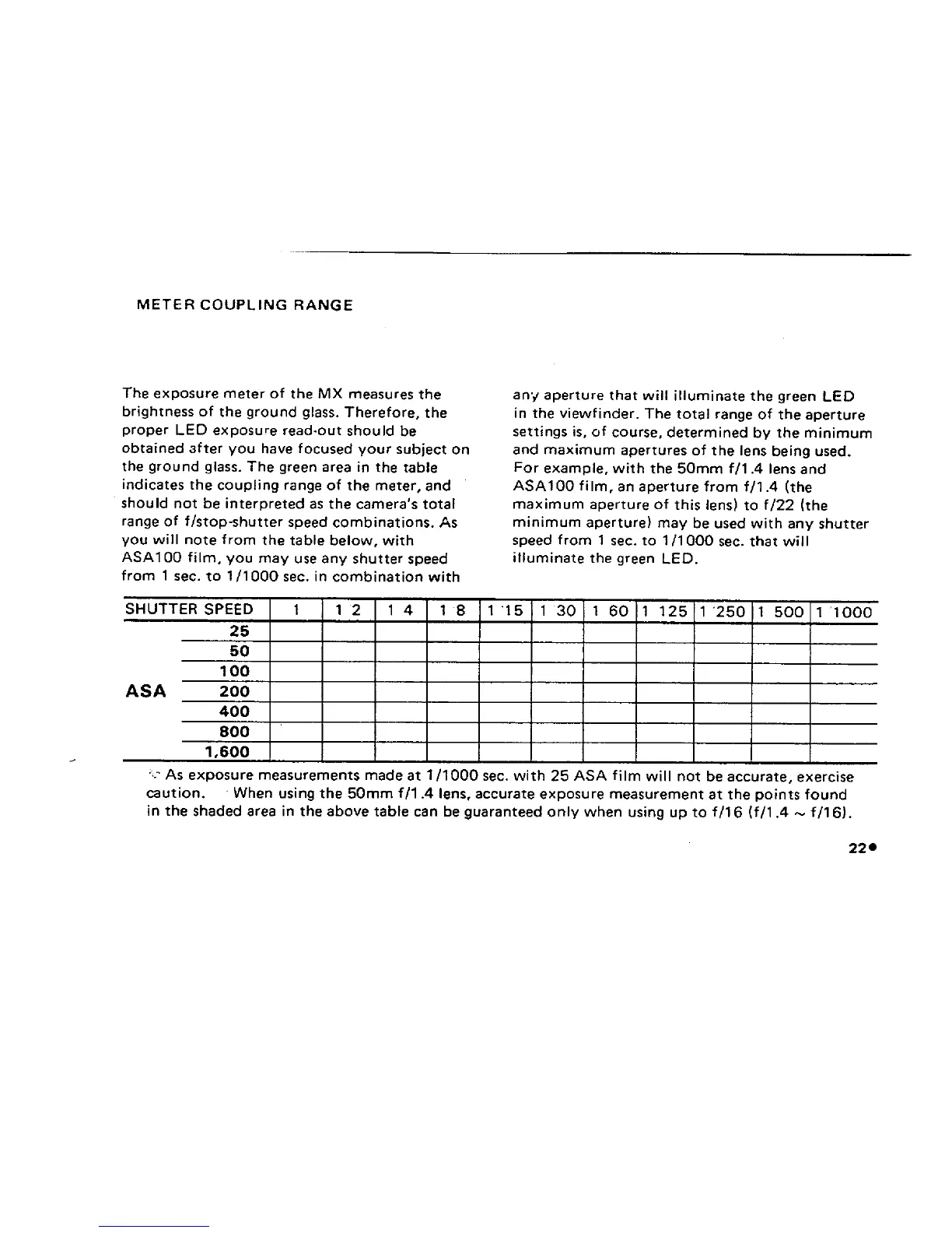 Pentax MX - Pentax MX Meter Coupling Range