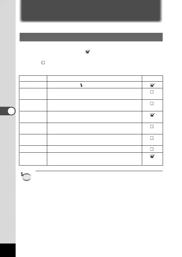 tings selected on the menus for each function when the camera is