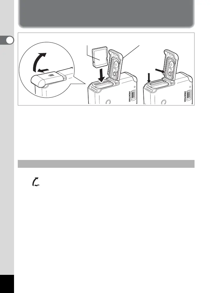 1 Slide the battery/card cover to the direction of the arrow