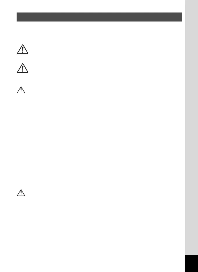 • Do not disassemble or modify the camera. High voltage areas are present inside
