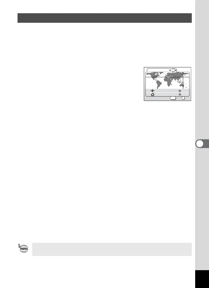 The date and time set in “Initial Settings (p.20)” are the Home Time (your