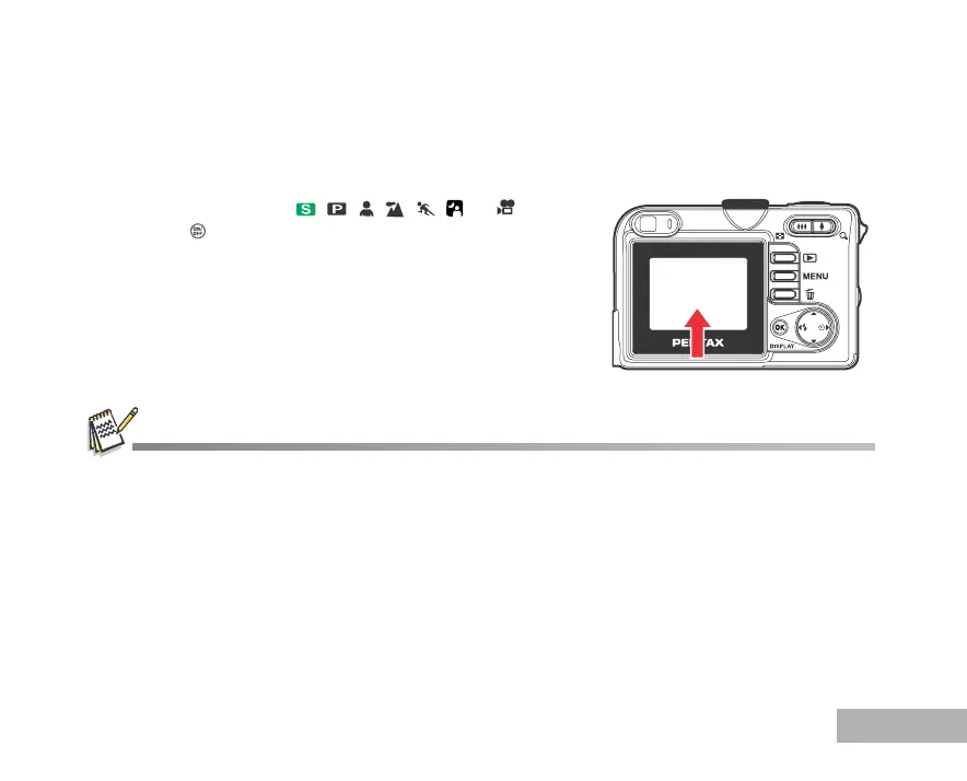recorded images/movie clips or adjust menu settings. The mode icons, text and numbers displayed on