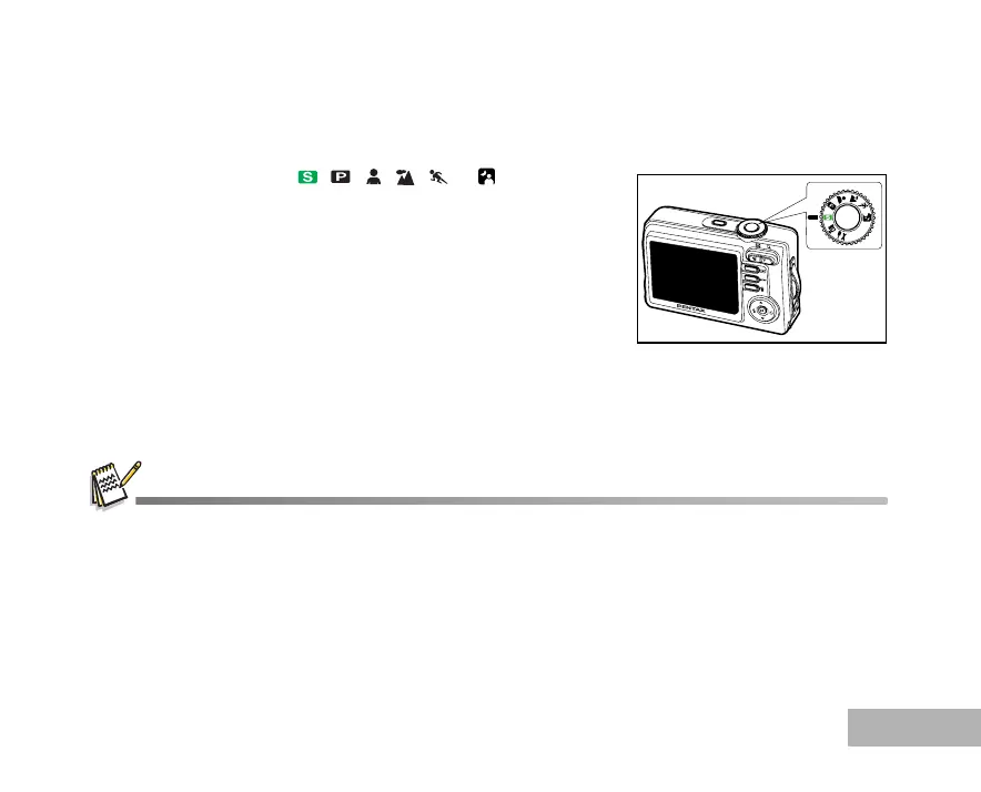 1. Rotate the mode dial to , , , , or and turn your