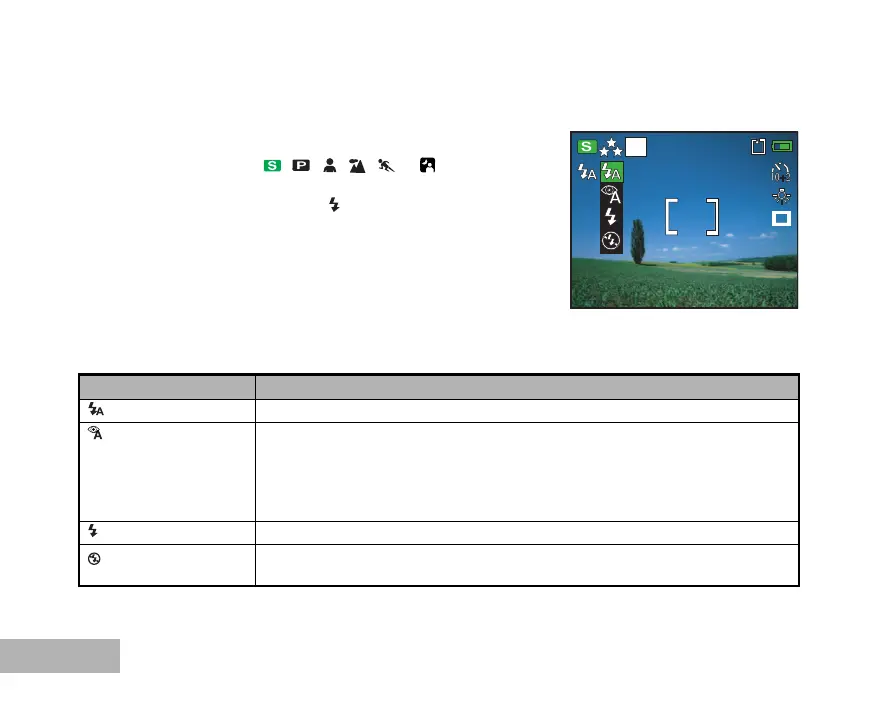 The camera has four flash modes: Auto, Auto + Red-eye, Flash On and Flash Off.