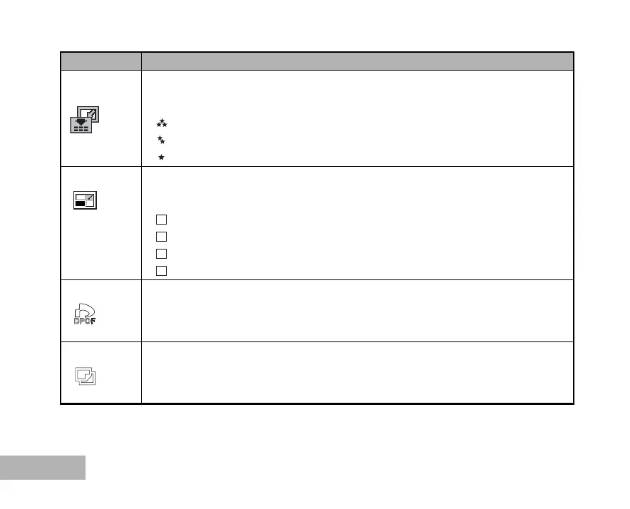DPOF Allows you to select the desired pictures to be printed and set the number of prints and