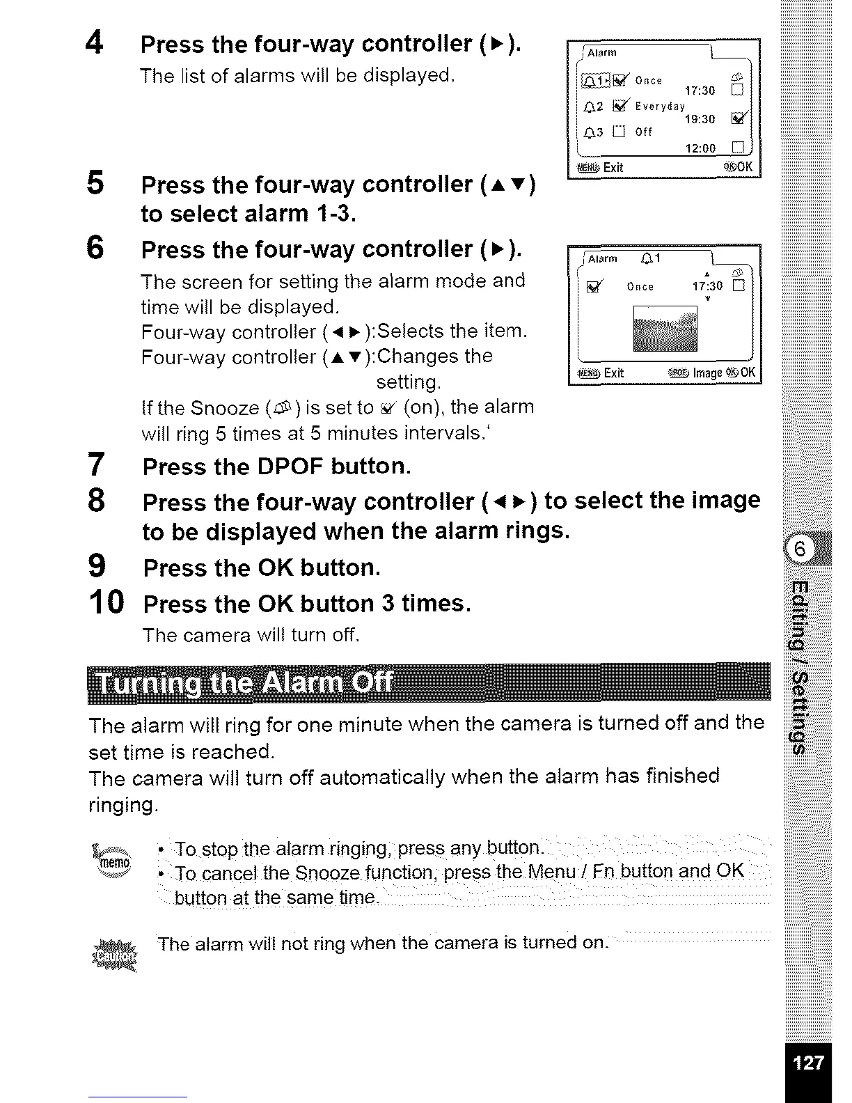 Theringing.Camerawill turn off automatically when the alarm has finished ..............