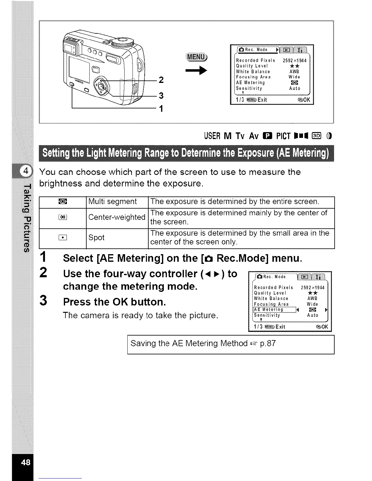 1 Select [AE Metering] on the [o Rec.Mode] menu.
