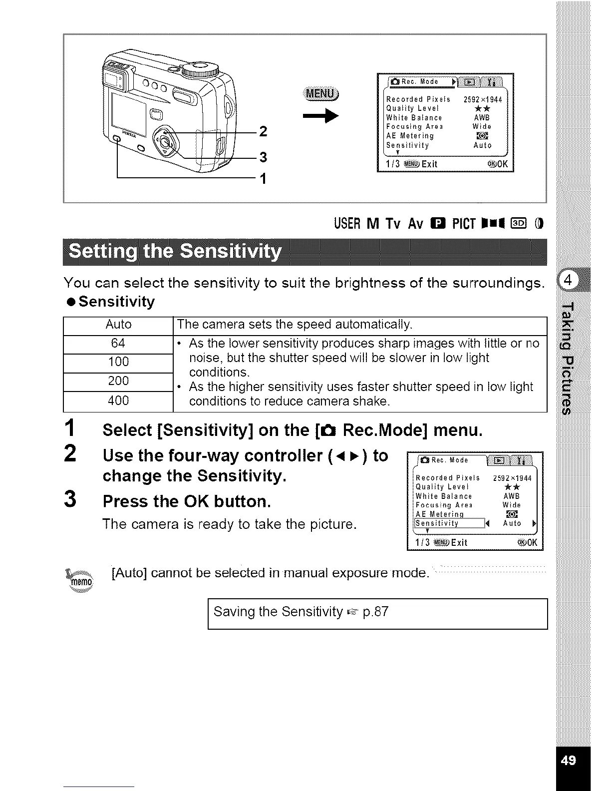 1 Select [Sensitivity] on the [0 Rec.Mode] menu.