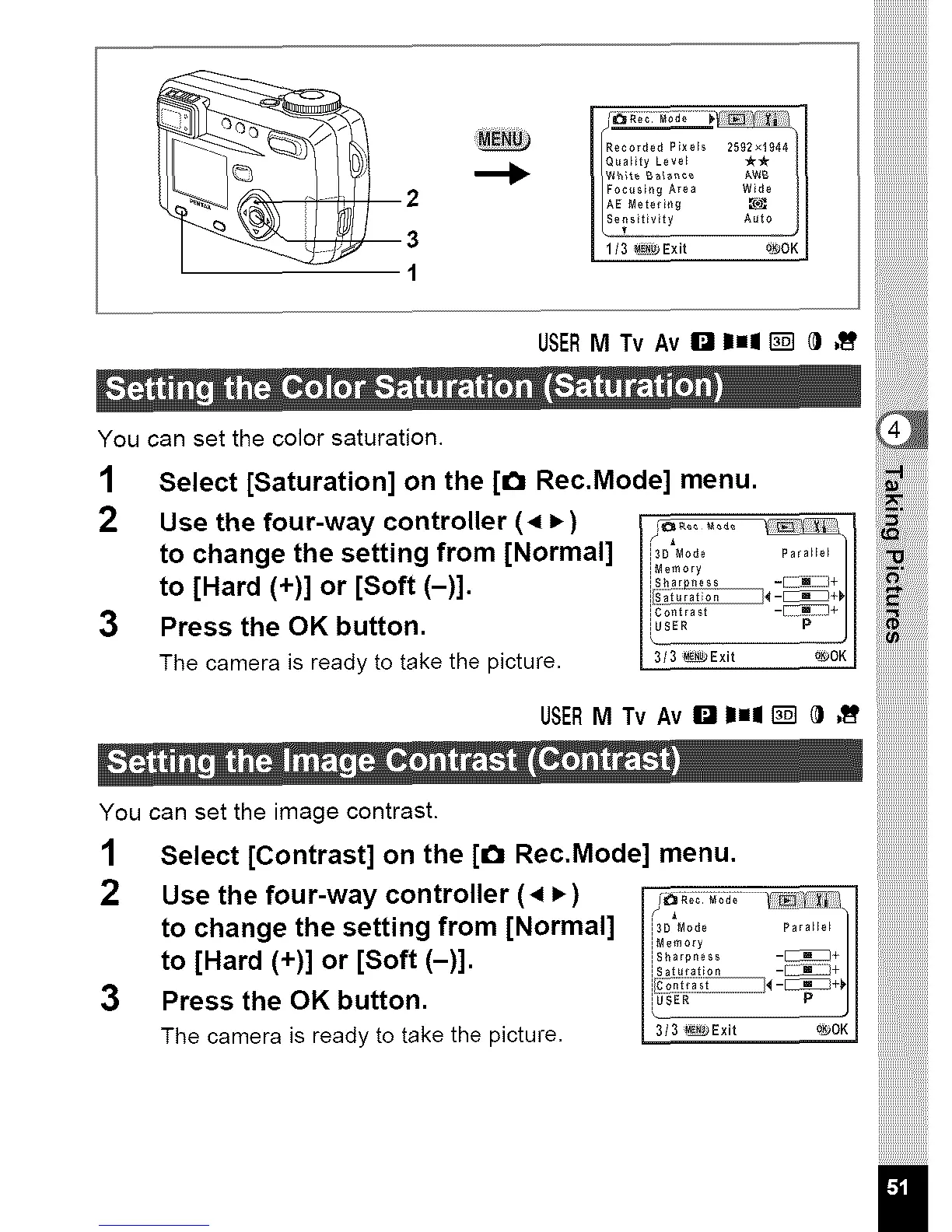 1 Select [Saturation] on the [€_ Rec.Mode] menu.