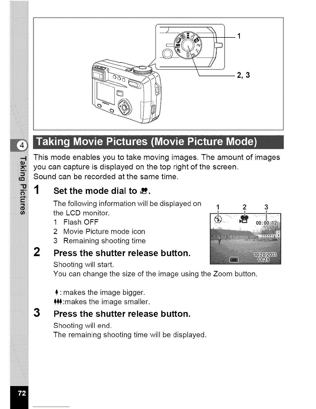 Thismodeenablesyoutotakemovingimages.Theamountofimages