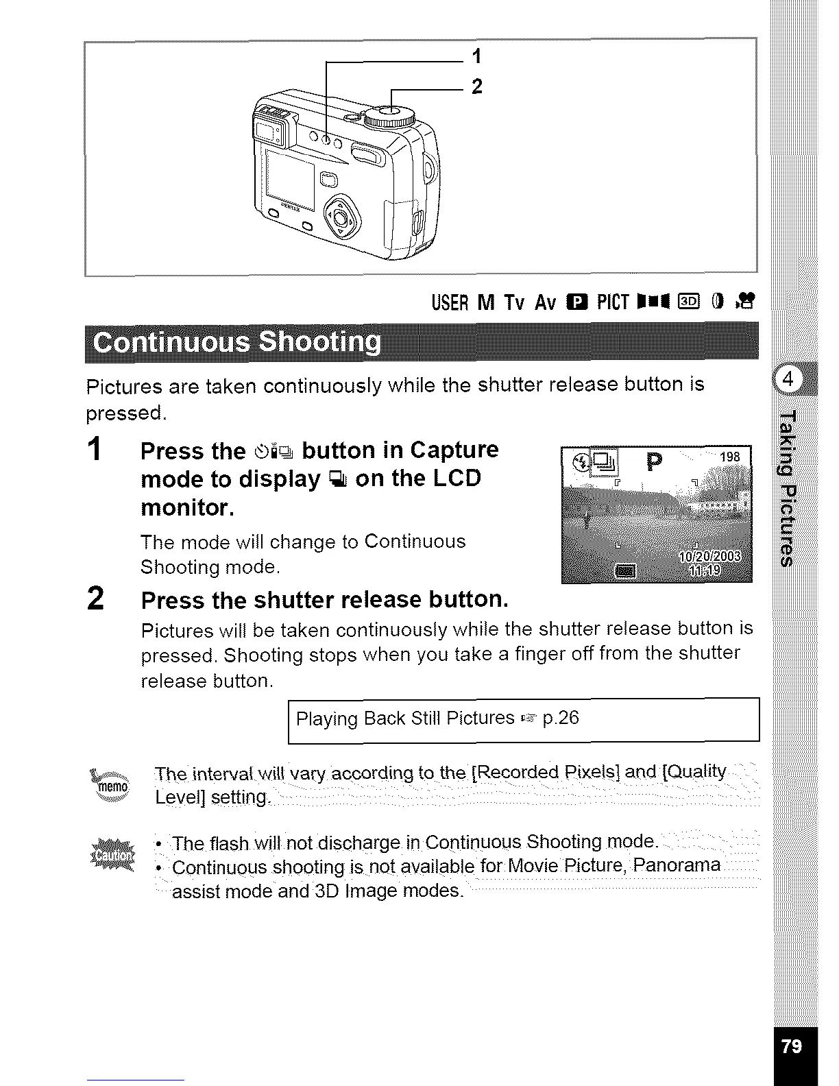 • Continuous Shooting isnQt available for Movie Picture, Panorama