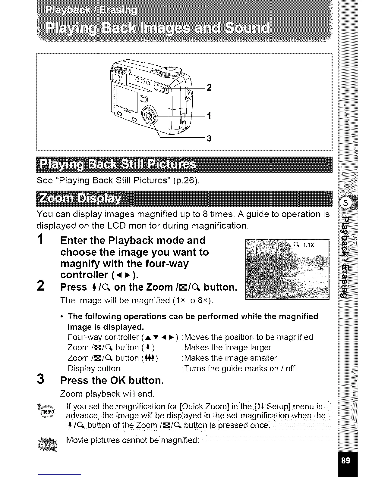 ....... If you set the magnification for [Quick Zoom] in the[_(i Setup] menu in