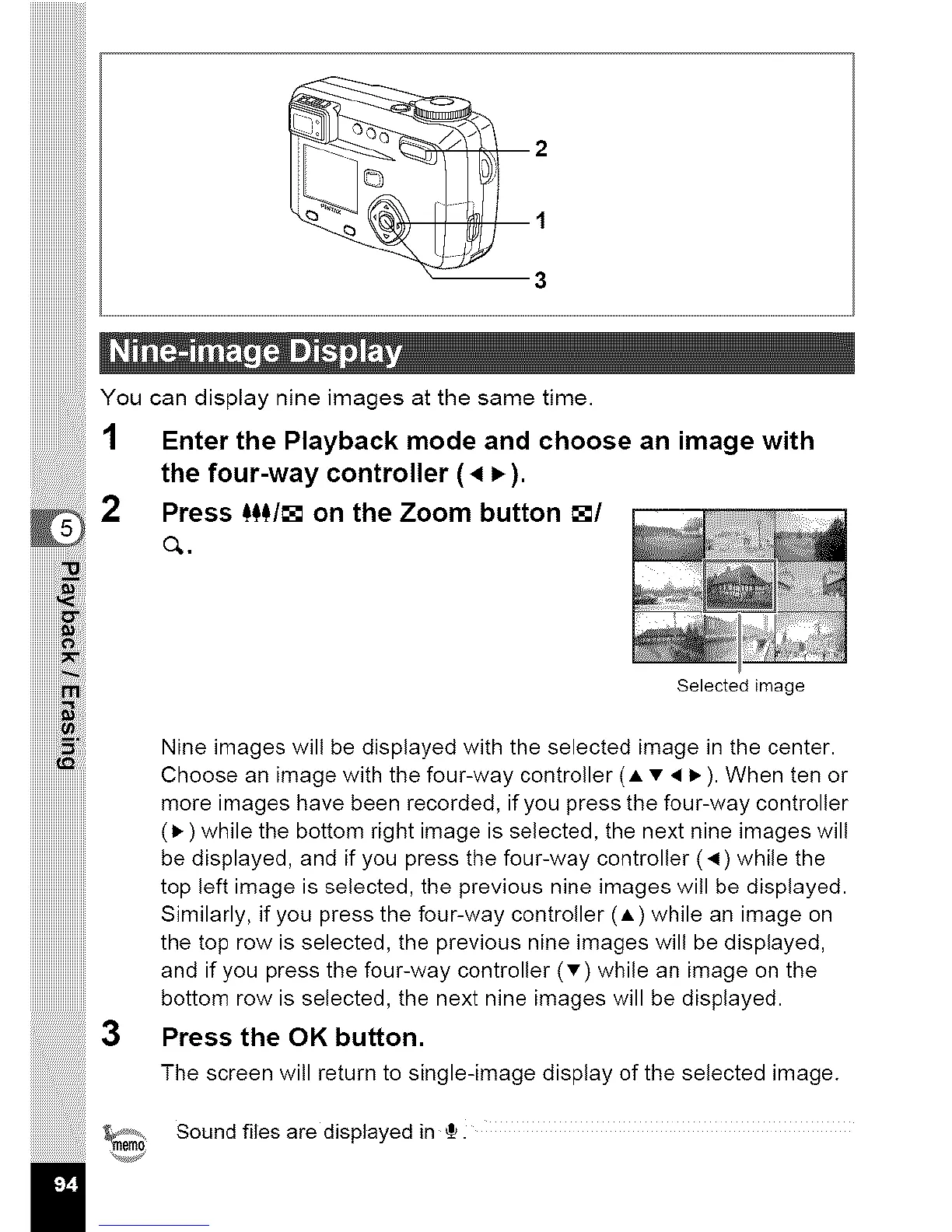 the top row is selected, the previous nine images will be displayed,
