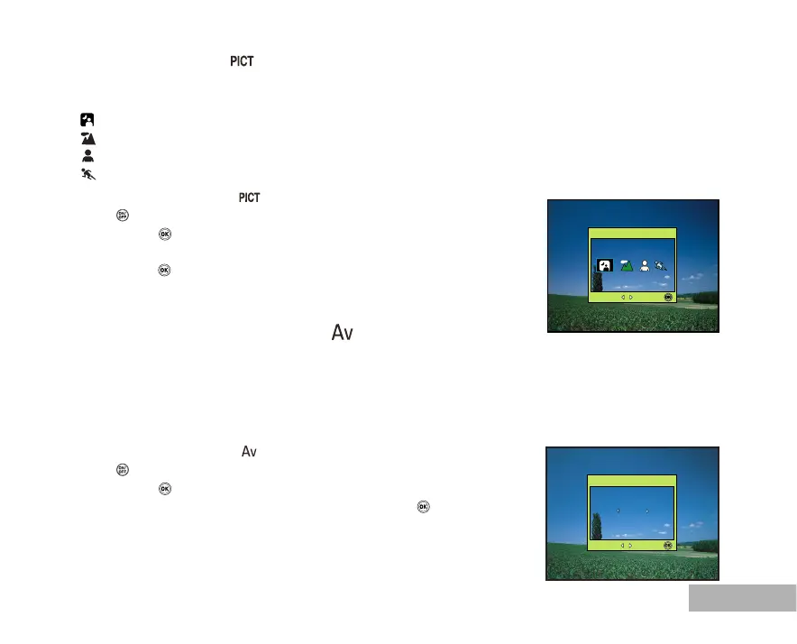 3. Set the aperture value with or , and press the