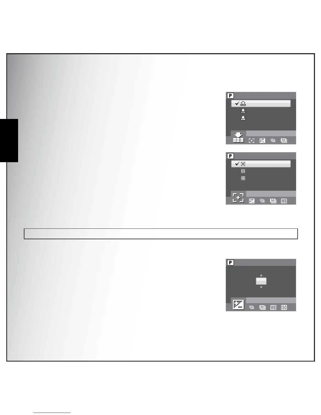 See “Using the AEB (Auto Exposure Bracketing) Function” on page 22 for more details.