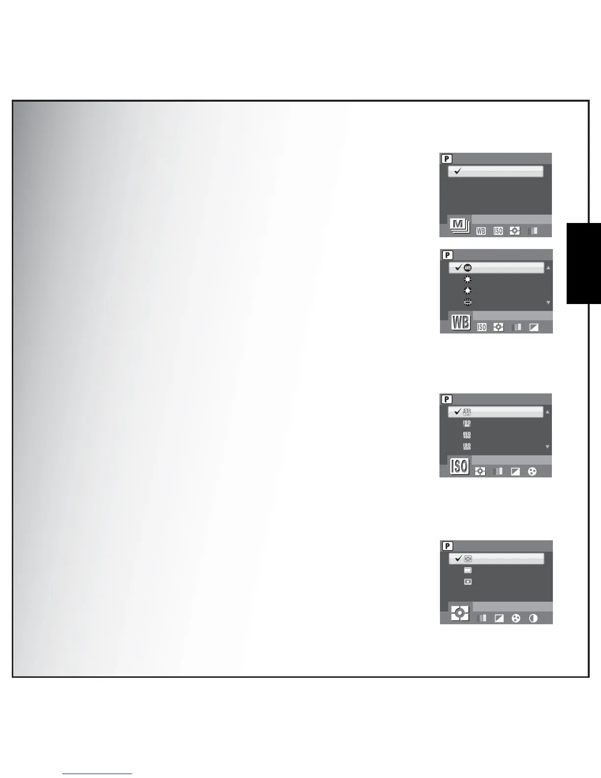 options. Five white balance settings are available: