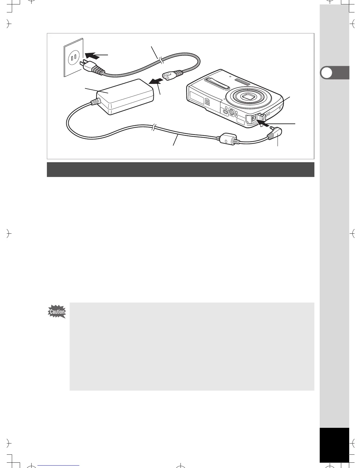 Use of the AC adapter kit K-AC64 (optional) with a household power