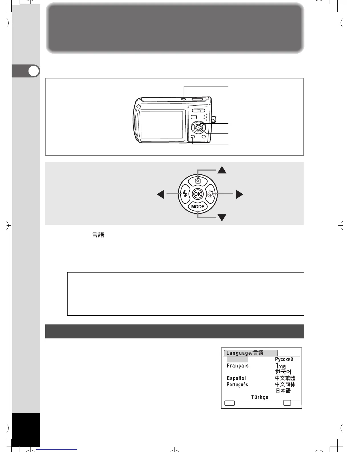 language, and in “Setting the Date and Time” (p.37) to set the current date and time.