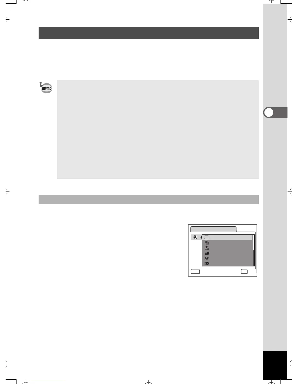 setting screens of frequently used functions such as EV Compensation,