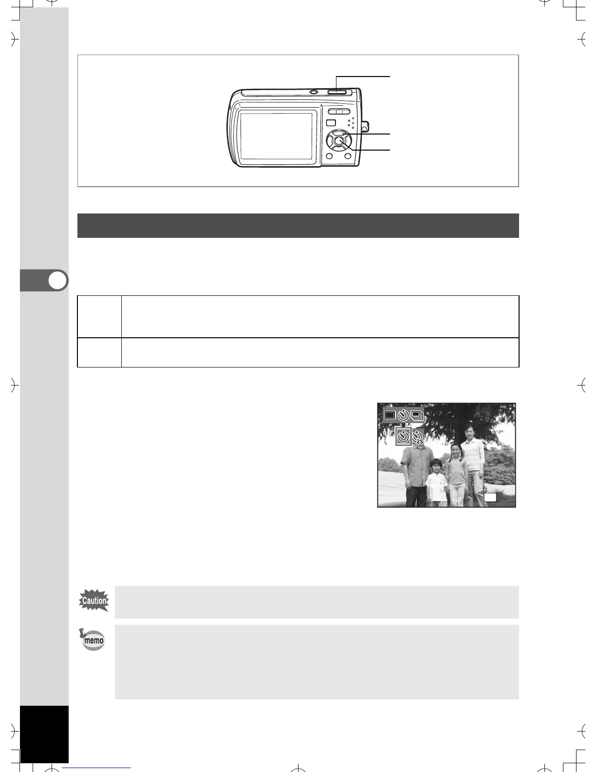 Use this mode to avoid camera shake. The picture is taken approximately two