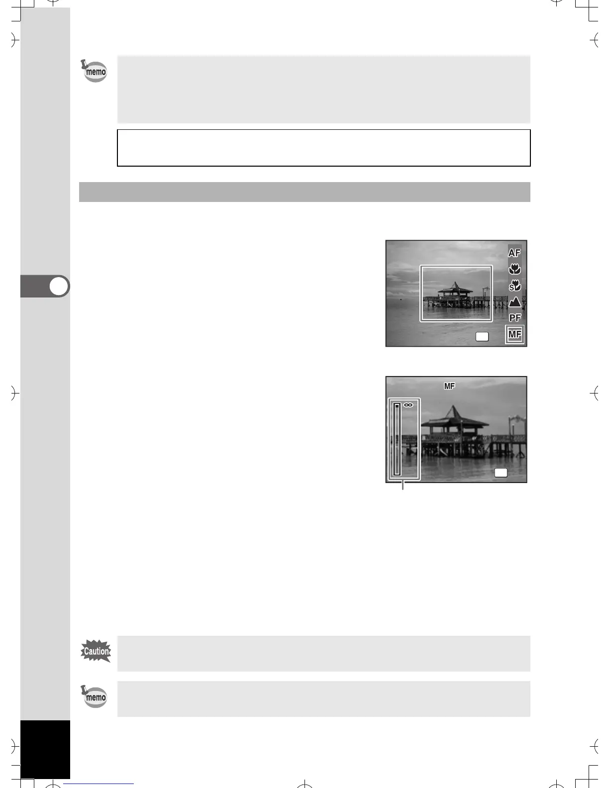 The procedure for setting the focus manually (\) is described below.